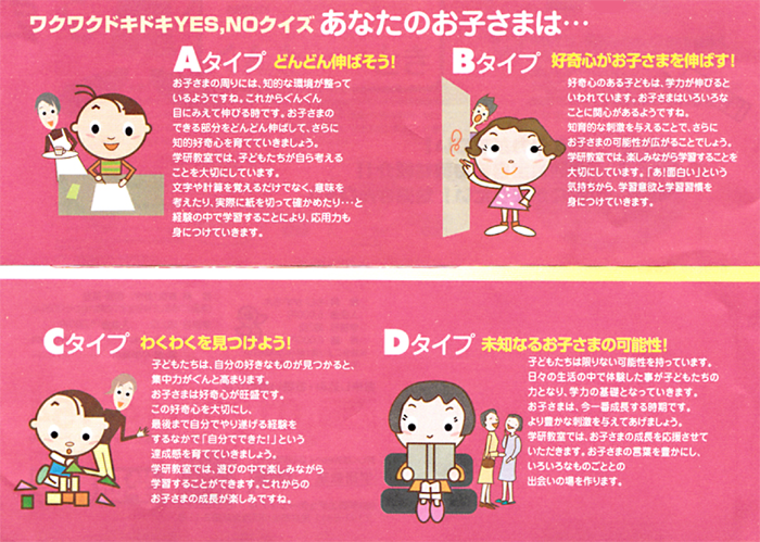 学研あびこ教室では、豊富な幼児さん用の「ちえ」教材で充実した幼児指導を行い、基本的な生活習慣を